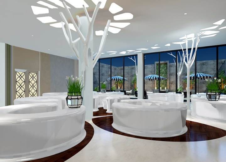 設(shè)計(jì)說(shuō)明:此咖啡廳設(shè)計(jì)案例設(shè)計(jì)師室內(nèi)空間采用了白色為主色調(diào),以現(xiàn)代簡(jiǎn)約設(shè)計(jì)風(fēng)格為主,室內(nèi)利用白色發(fā)光的“樹”作為裝飾,讓人想起了阿凡達(dá)中的精靈世界,空間少量的采用吊籃盆栽做為裝飾,在白色純凈的世界中添加一點(diǎn)綠意,有效的起到了畫龍點(diǎn)睛的作用。給消費(fèi)者提供了一個(gè)純凈潔白的用餐空間!