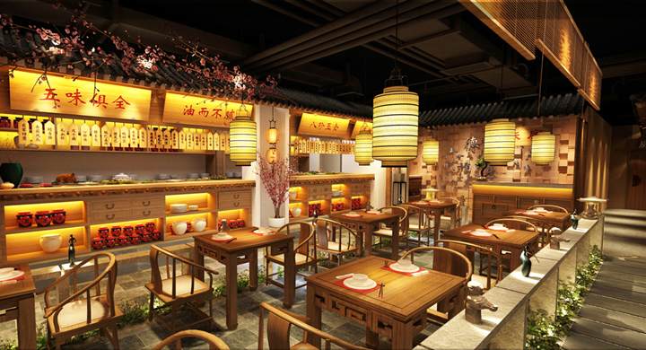 設計說明:餐廳裝修設計案例設計師為了體現西安民居與中式傳統建筑的特色,采用了中式古典的裝修風格!